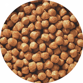 穀類(小麦粉、とうもろこし、小麦ふすま 、コーングルテンミール、脱脂米糠、等)、豆類(大豆ミール、等)、肉類(ミートミール、チキンレバーパウダー、チキンミール、等)、油脂類(牛脂、等)、ビートパルプ、魚介類(フィッシュミール、等)、セレン酵母、オリゴ糖、パプリカ、ビール酵母、グルコサミン、ミネラル類(カルシウム、リン、ナトリウム、塩素、鉄、銅、マンガン、亜鉛、ヨウ素、コバルト)、ビタミン類(A、D、E、K、B1、B2、パントテン酸、ナイアシン、B6、葉酸、ビオチン、B12、コリン)、アミノ酸類(メチオニン)、食用黄色5号、食用赤色3号、食用赤色102号、香料 、酸化防止剤(ローズマリー抽出物)