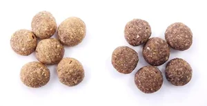 ドライフードの粒は消化をよくするために膨化加工をしております。天然の原材料を使用しておりますので、使用する原材料の採れた場所や時期などにより、膨化具合にばらつきが生じてしまいます。品質上問題はありませんので、安心してご使用ください。